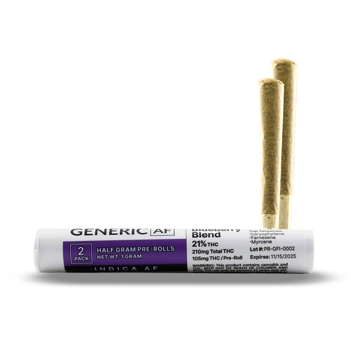 Generic Pre-Rolls | Indica AF | Blueberry Blend | 0.5g Ea. | 2-Pack